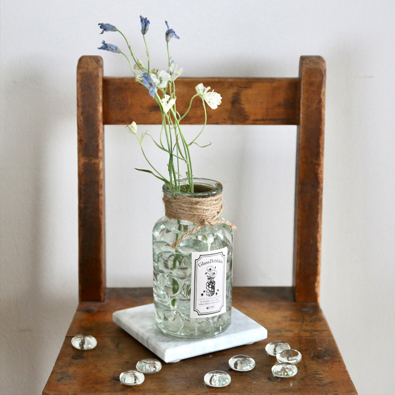 植物の枝を支えるペブル入りの花瓶に早変わり。