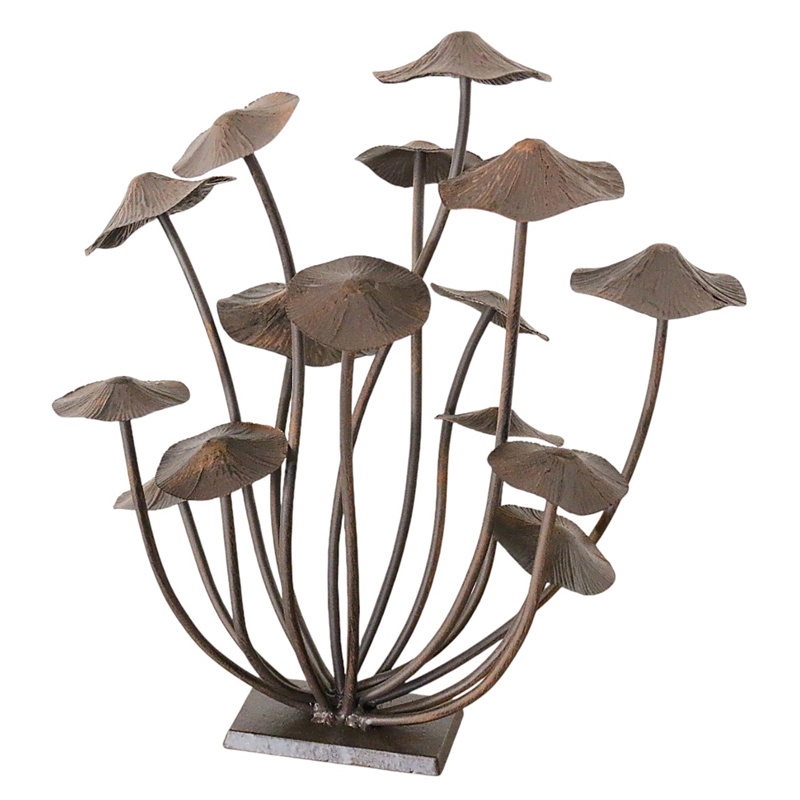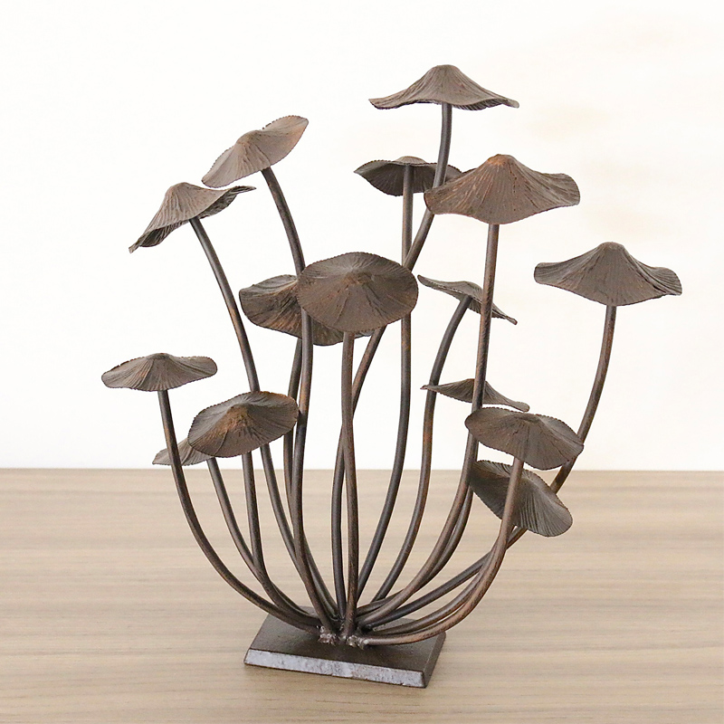 生命力あふれるアイアン製のキノコオブジェ。