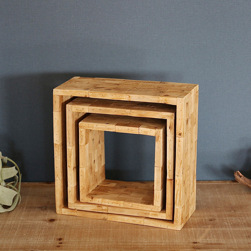 無垢のウッドピースをいくつも積み上げて立体にしたシリーズ。