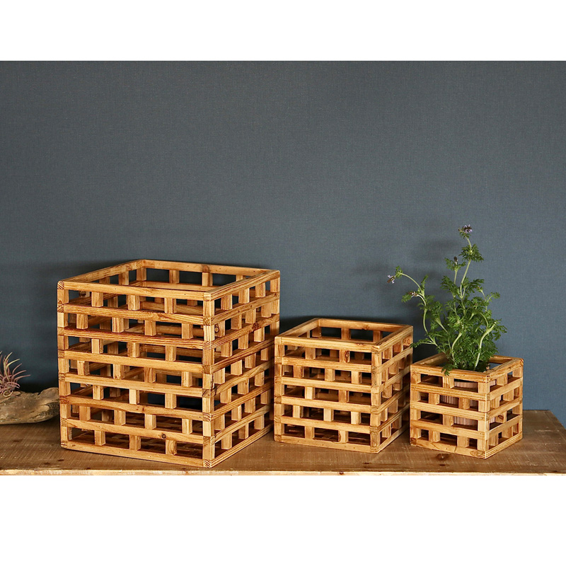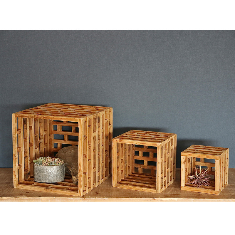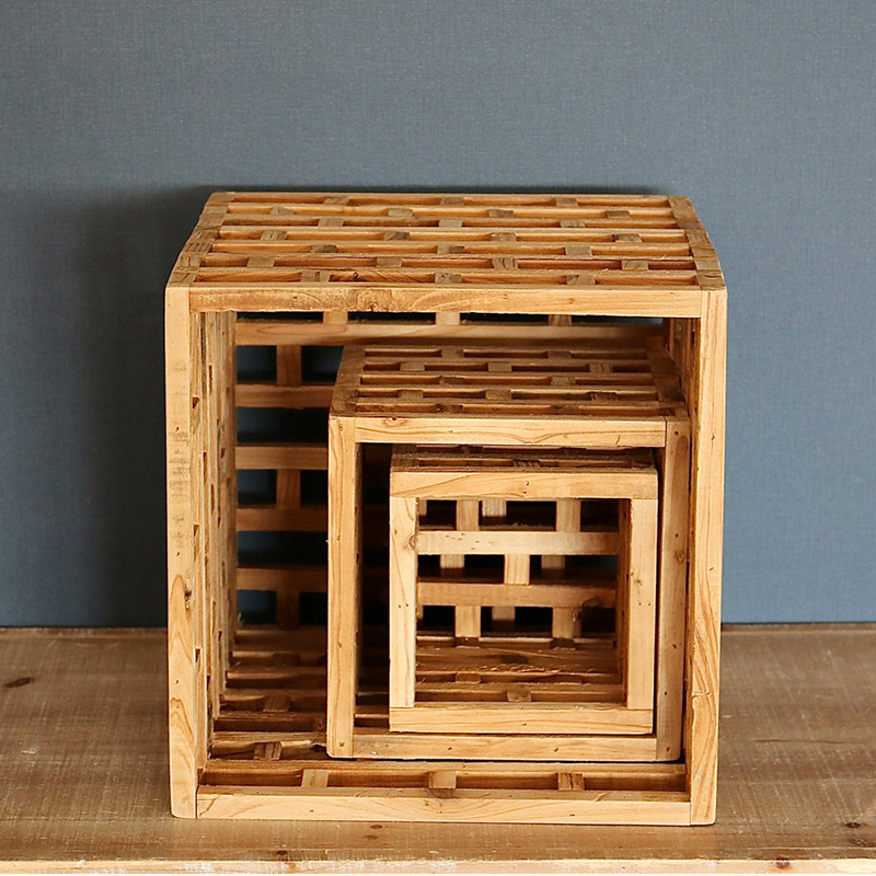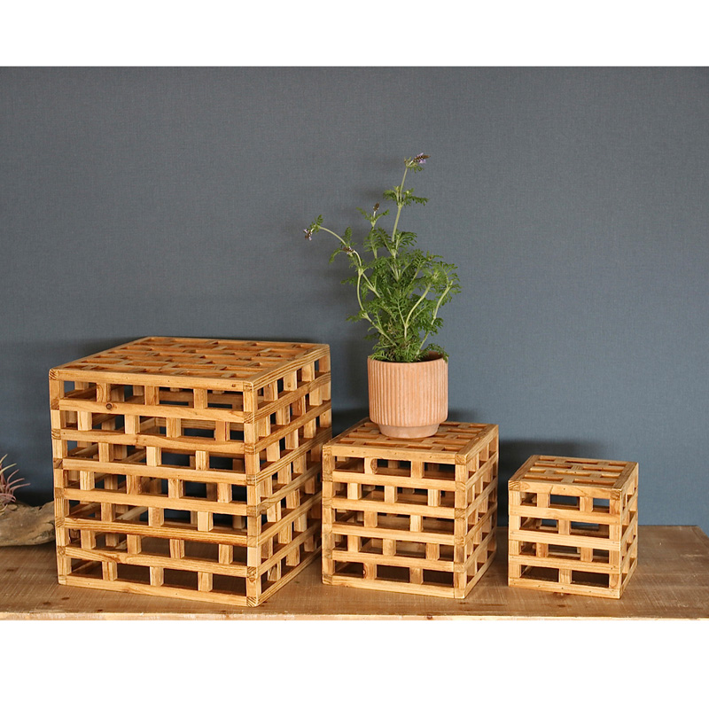 無垢のウッドピースをいくつも積み上げて立体にしたシリーズ。