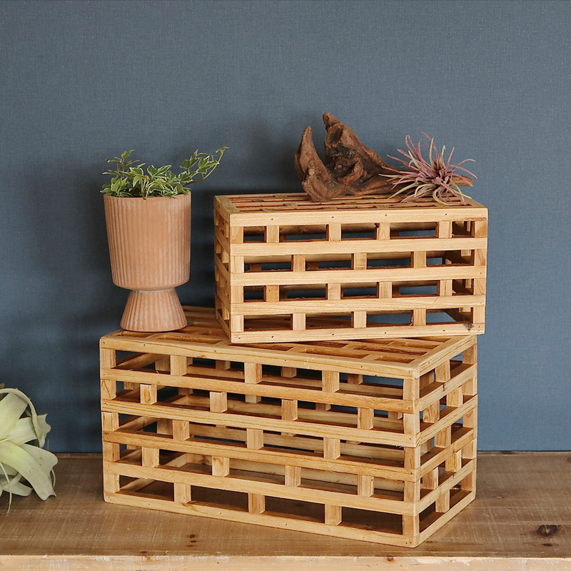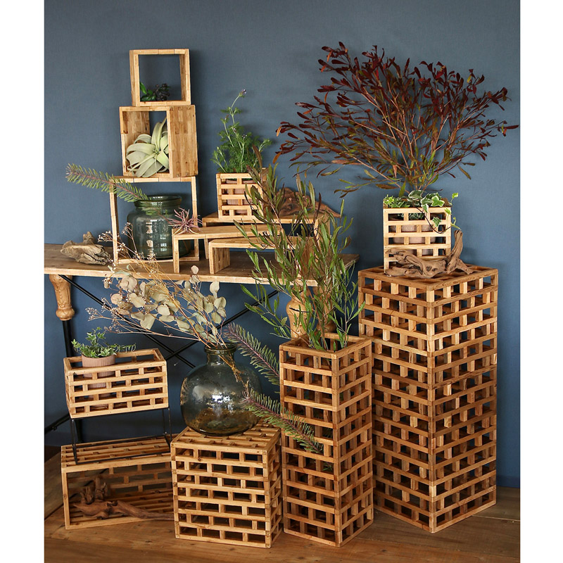 無垢のウッドピースをいくつも積み上げて立体にしたシリーズ。