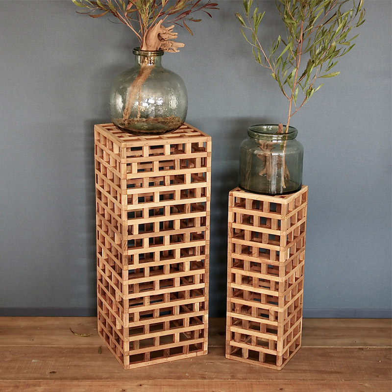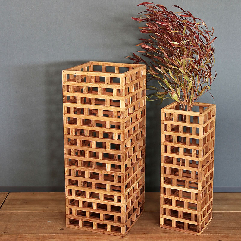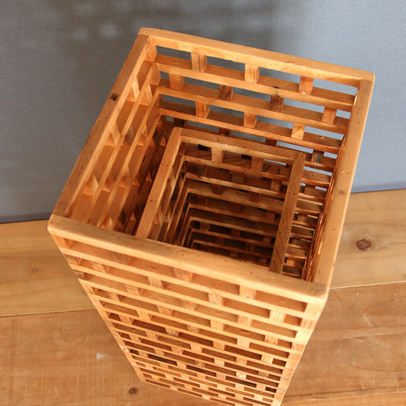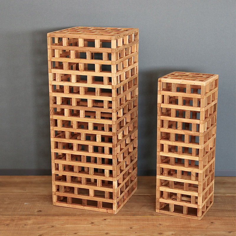 無垢のウッドピースをいくつも積み上げて立体にしたシリーズ。