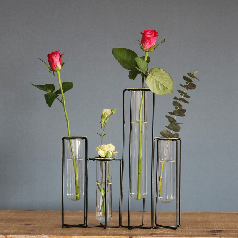 スリムなガラスベースと軽やかないアイアンスタンドを組み合わせたアイテム。