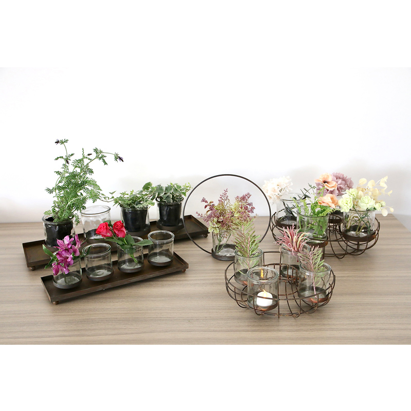 花器やキャンドルホルダー、小物などを単品でも組み合わせて使えるモジュール構造。