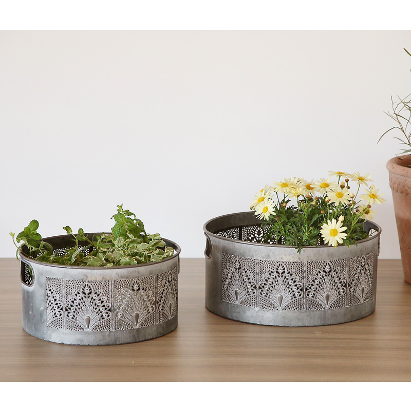 繊細な花柄模様が美しいアイアン製ポット。