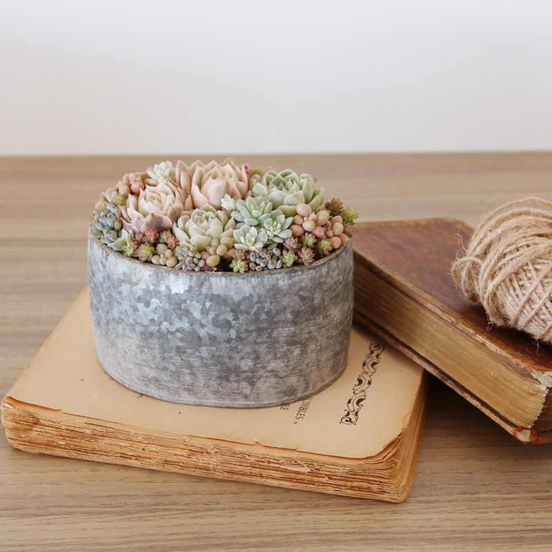 ナチュラル素朴な風合いが魅力的なブリキプランター。