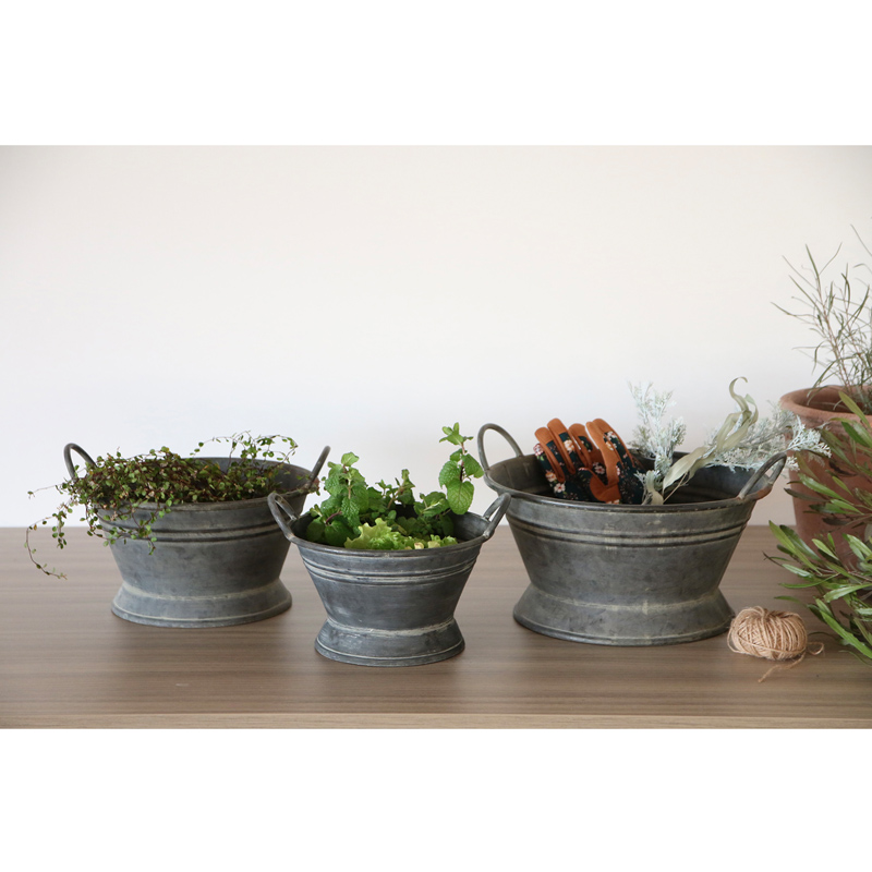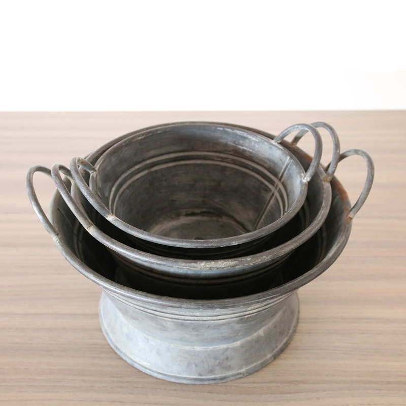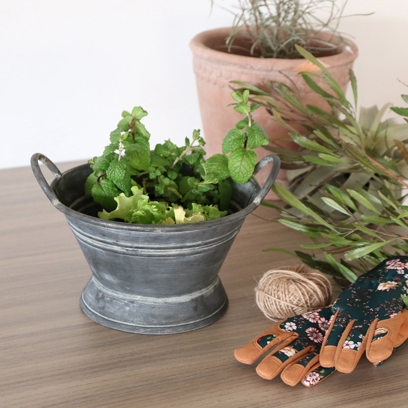ナチュラル素朴な風合いが魅力的なブリキプランター。