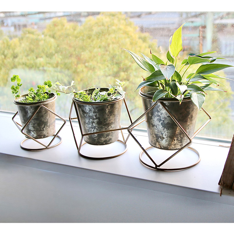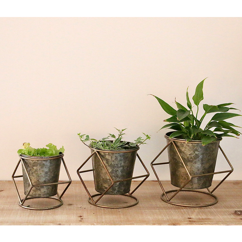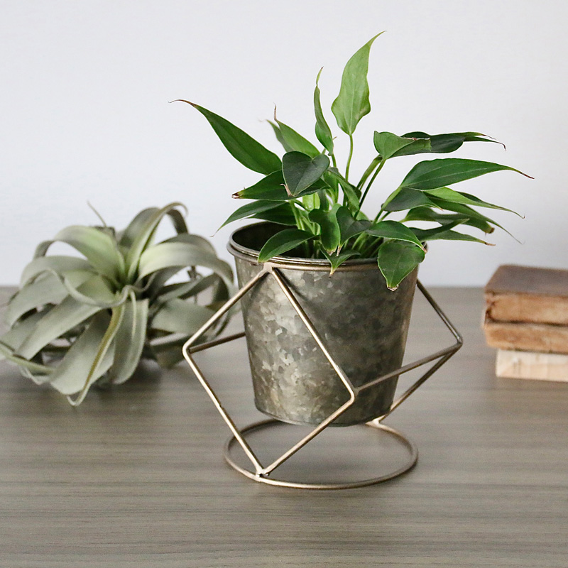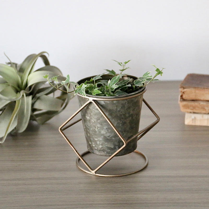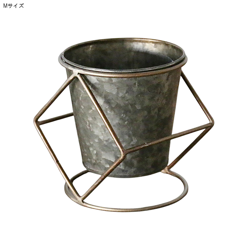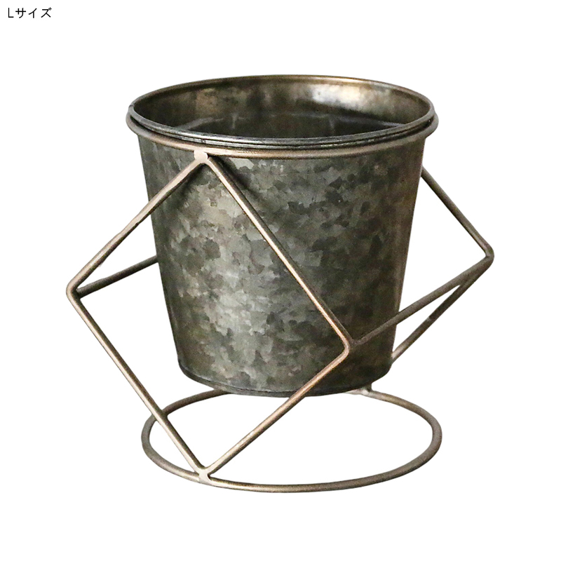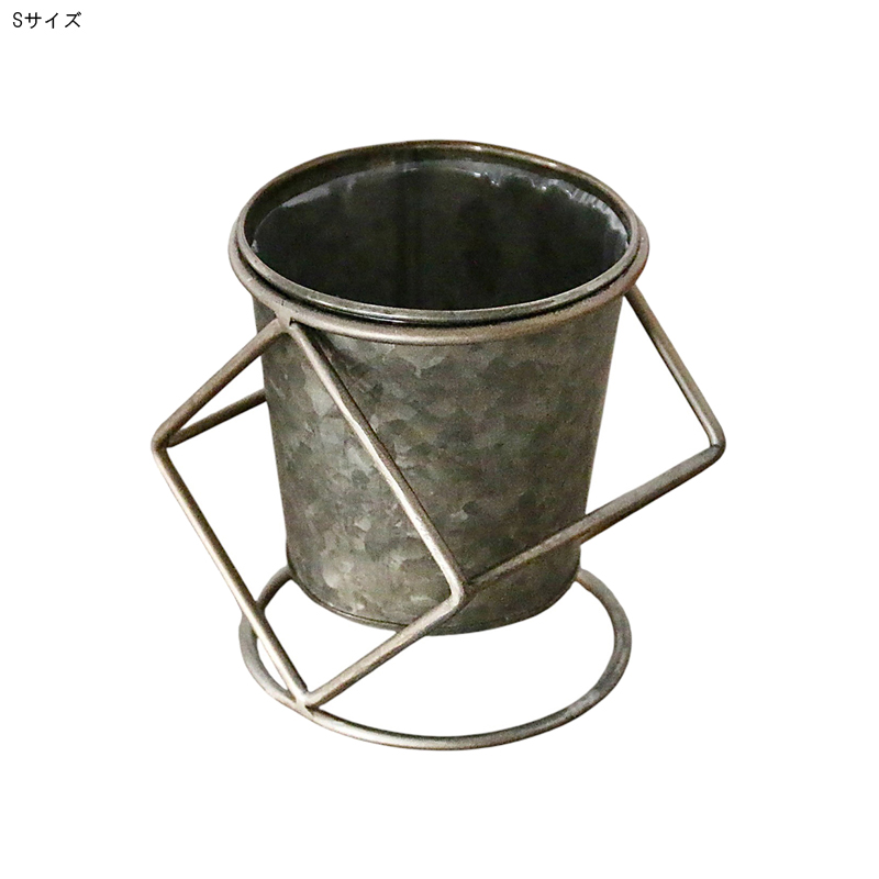 素朴な風合いのブリキポットに、ワイヤースタンドを組み合わせたデザイン。
