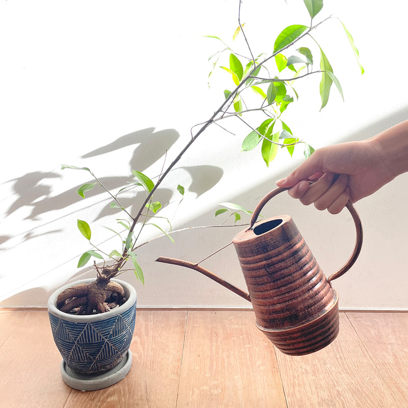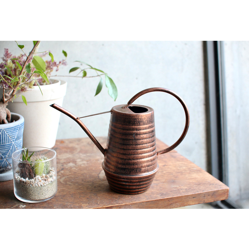 クラシカルなフォルムと温かみのある色合いが魅力のジョウロ。