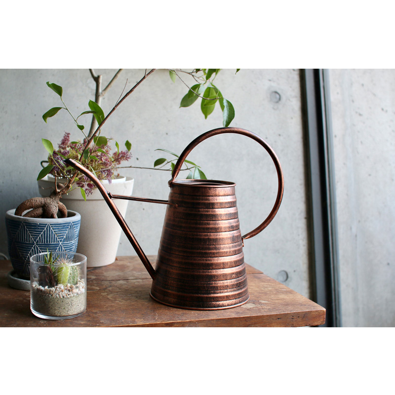 クラシカルなフォルムと温かみのある色合いが魅力のジョウロ。