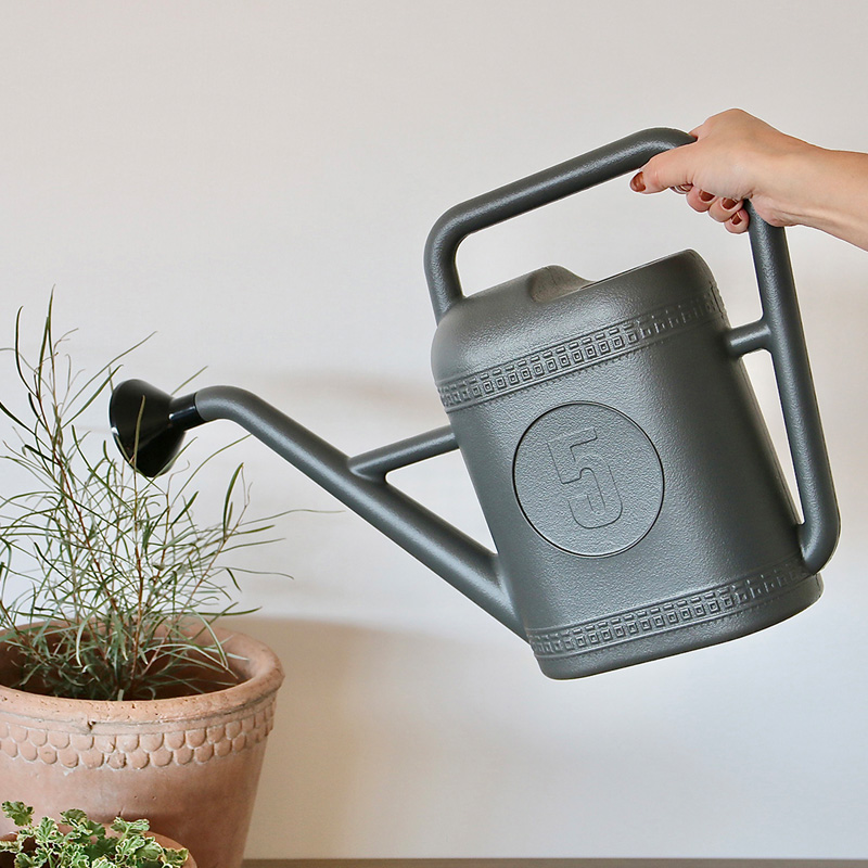 落ち着いたグレーカラーが際立つ洗練されたデザインのジョーロ。