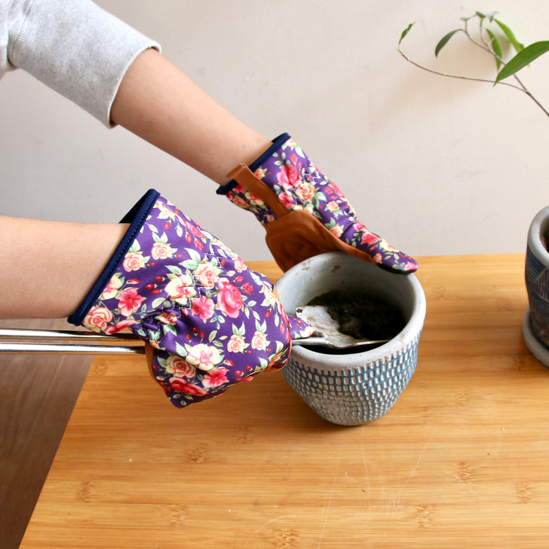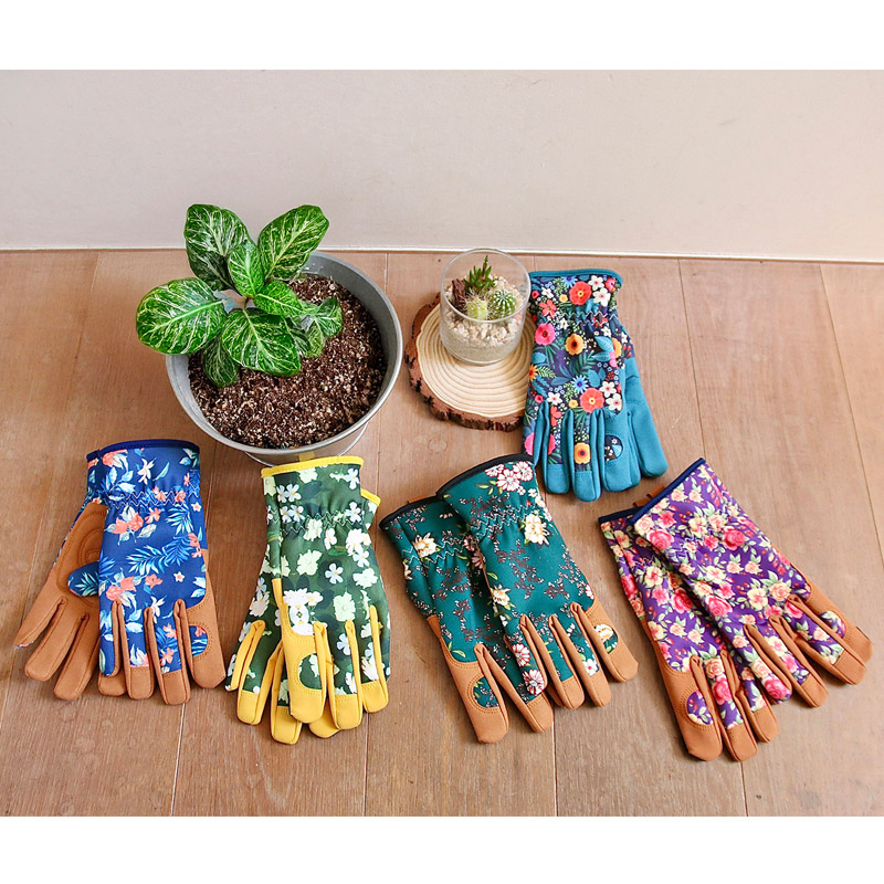 フラワーパターンが手元を華やかに彩る、ガーデニング用グローブ。