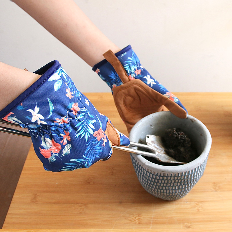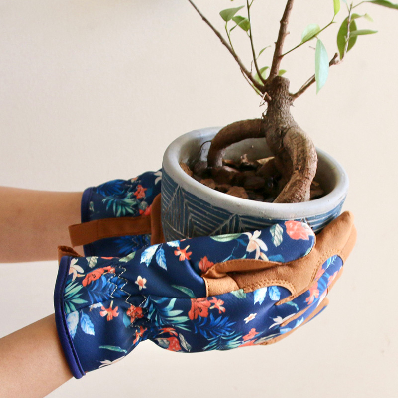 フラワーパターンが手元を華やかに彩る、ガーデニング用グローブ。