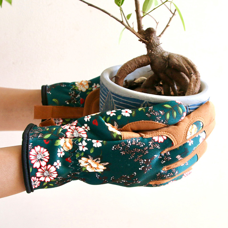 フラワーパターンが手元を華やかに彩る、ガーデニング用グローブ。