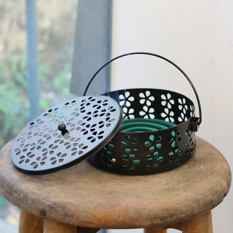 素朴な風合いのアイアン素材に、花模様の透かしを施した蚊遣り。