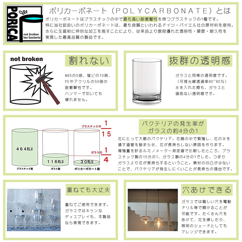 ・素材の凹凸が少ないことでバクテリアの住処をあたえず、発生しづらくなるため花が長持ち♪