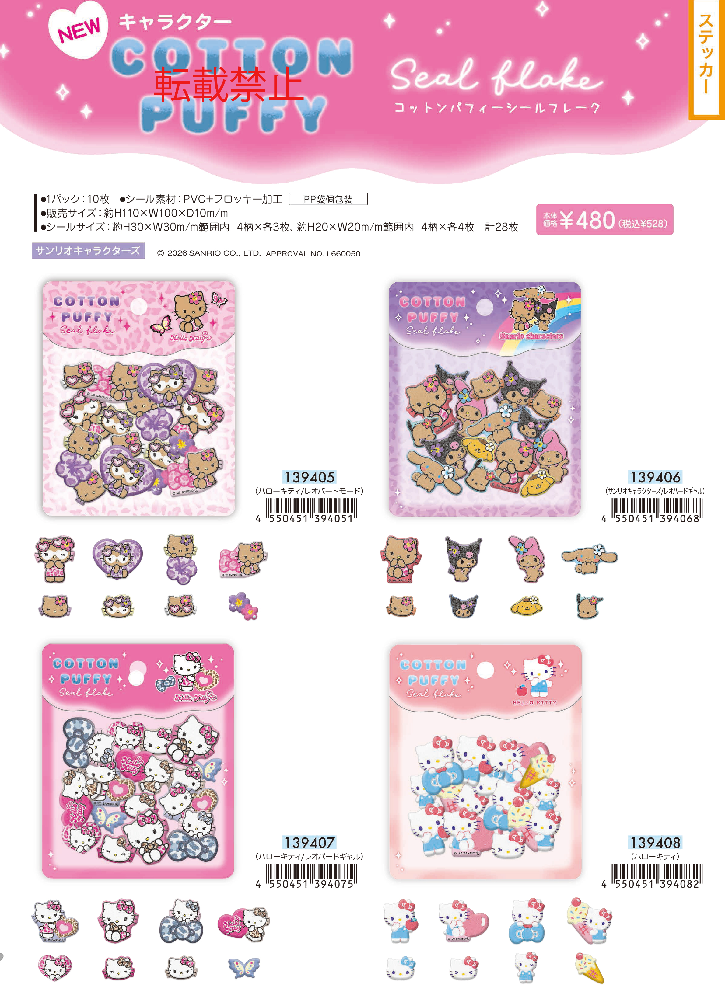 ■CRUX(クラックス)■■2026SS 先行予約■ サンリオキャラクターズ コットンパフィーシールフレーク ハローキティ