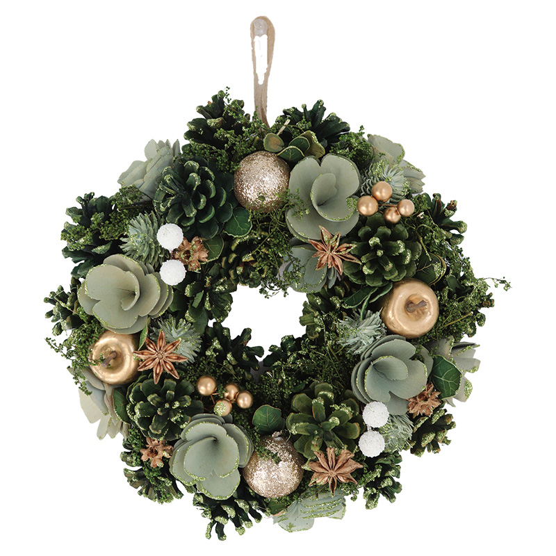 | 素材 | ドライフラワー・松笠・合成樹脂・発砲スチロール・スチール・ポリエステル |