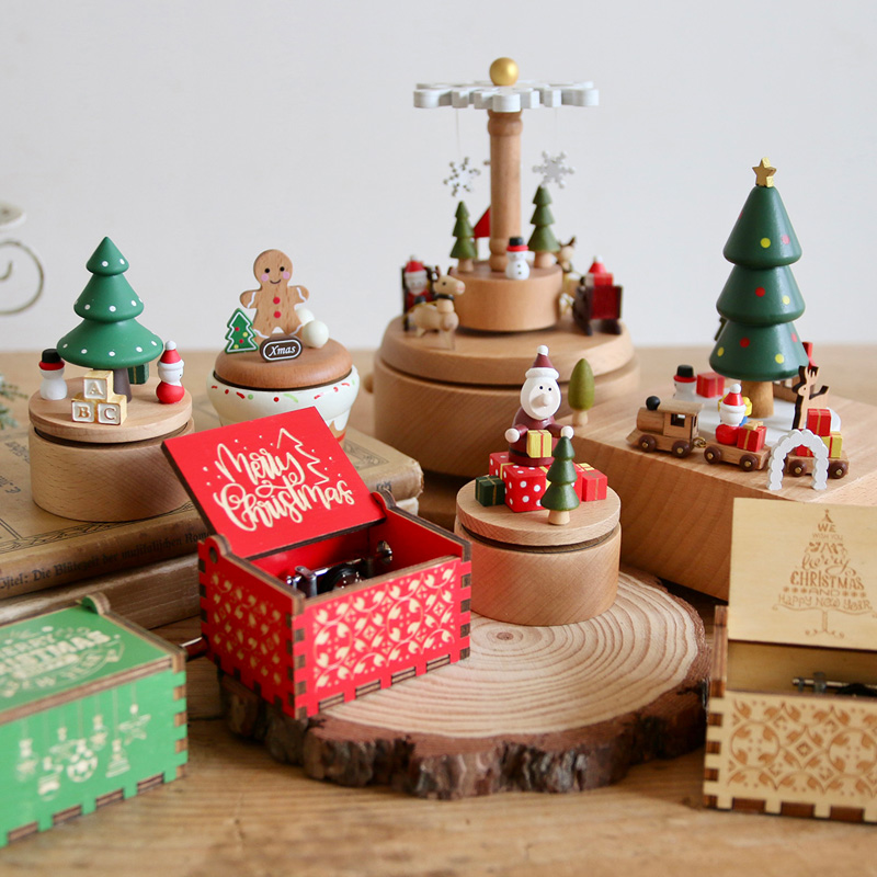 木の温もりを感じるクリスマスデザインのオルゴール☆
