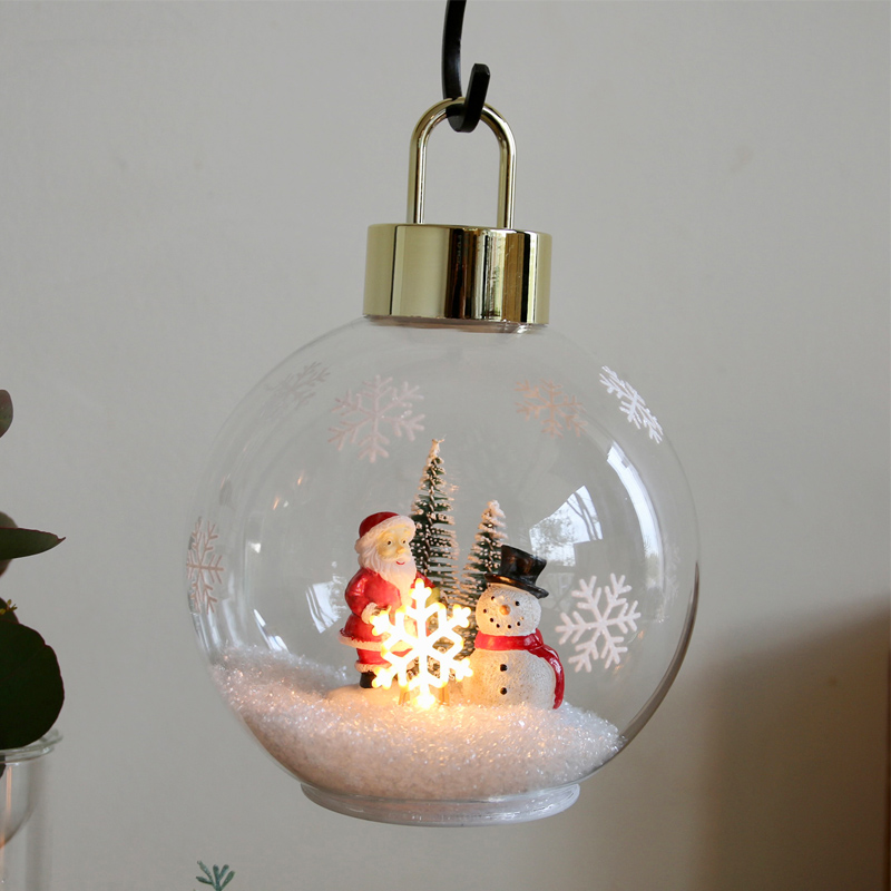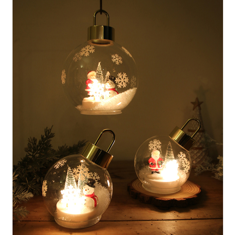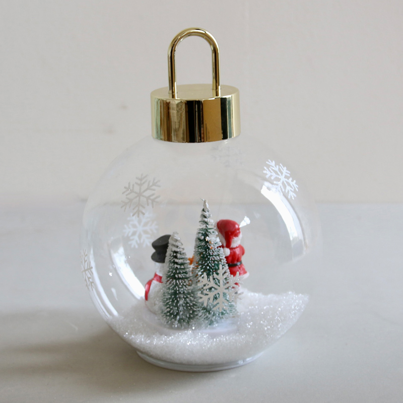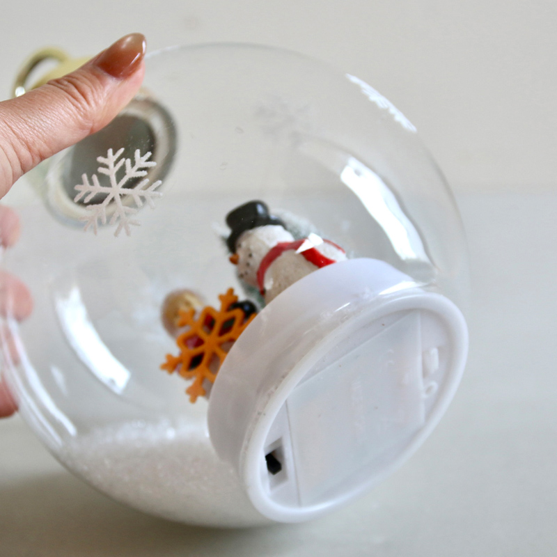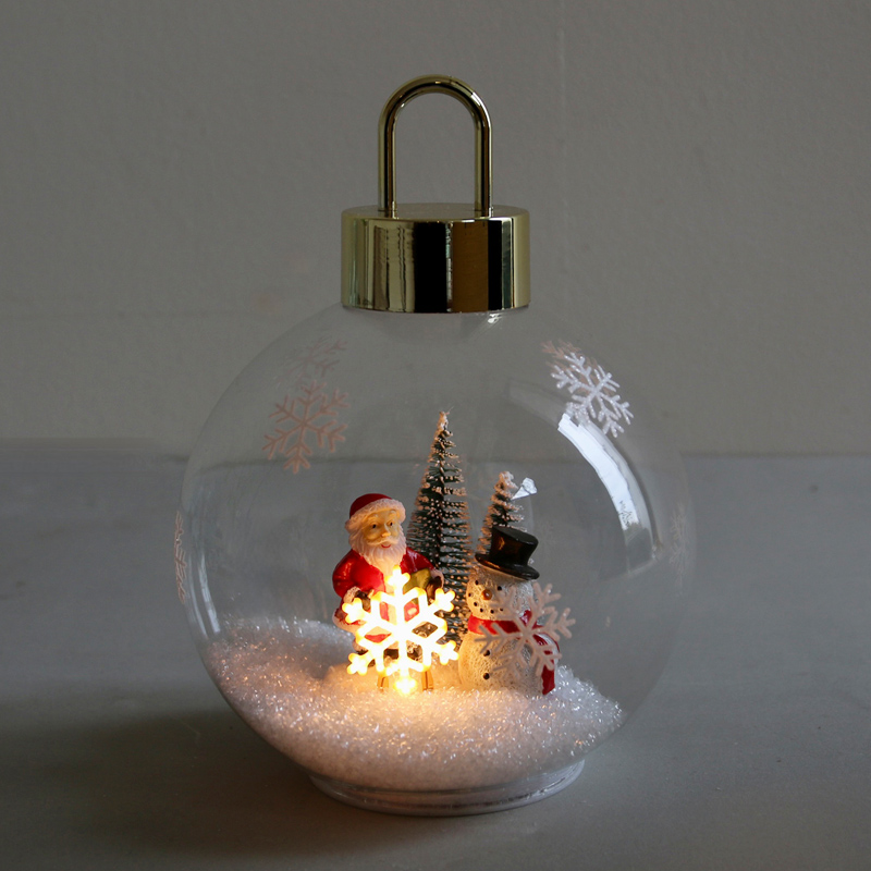 ガラスボールの中に雪景色を閉じ込めたライト付きオーナメント♪