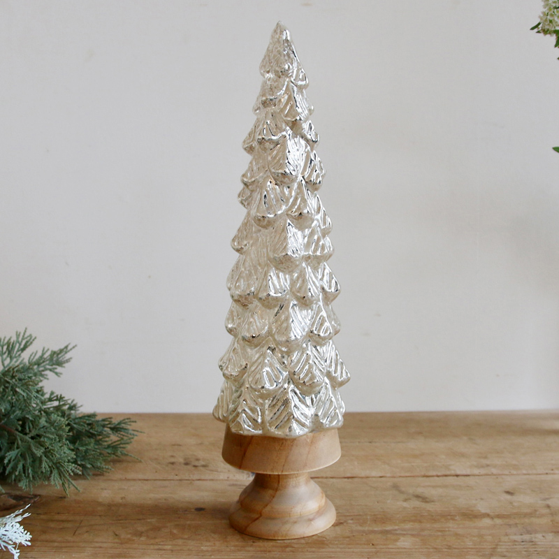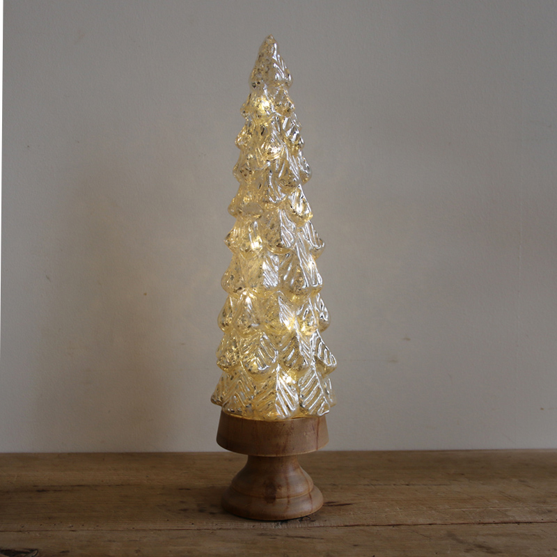 ガラスとウッドの異素材の組み合わせが美しいLEDツリー。
