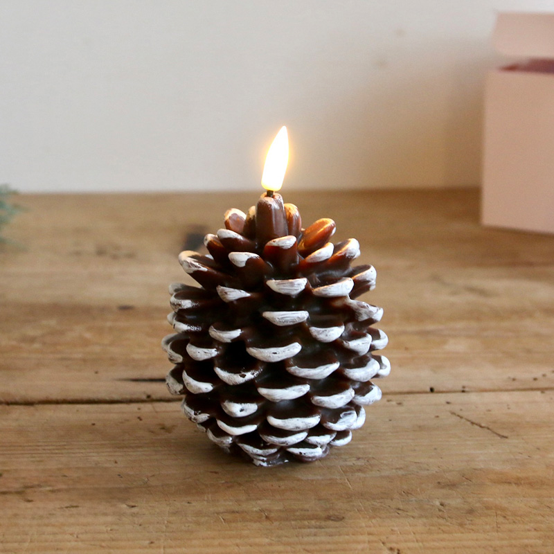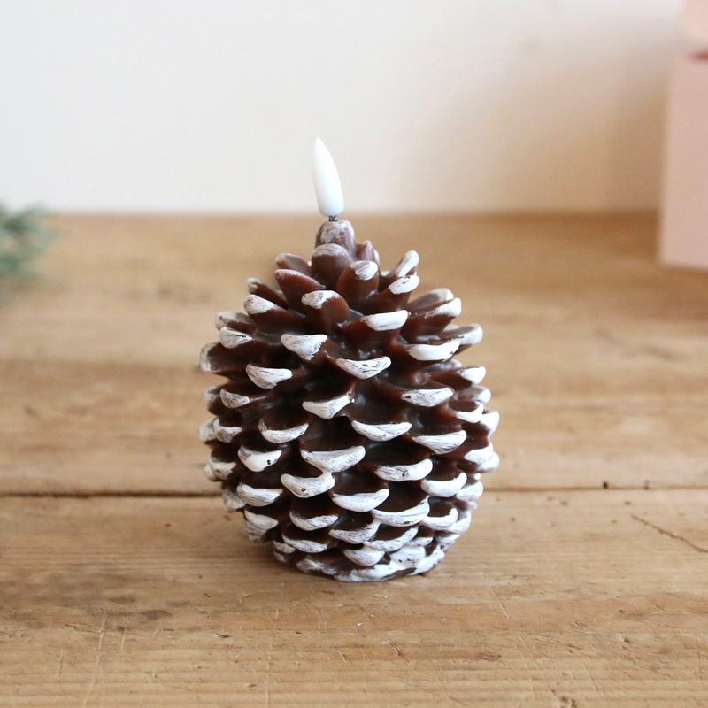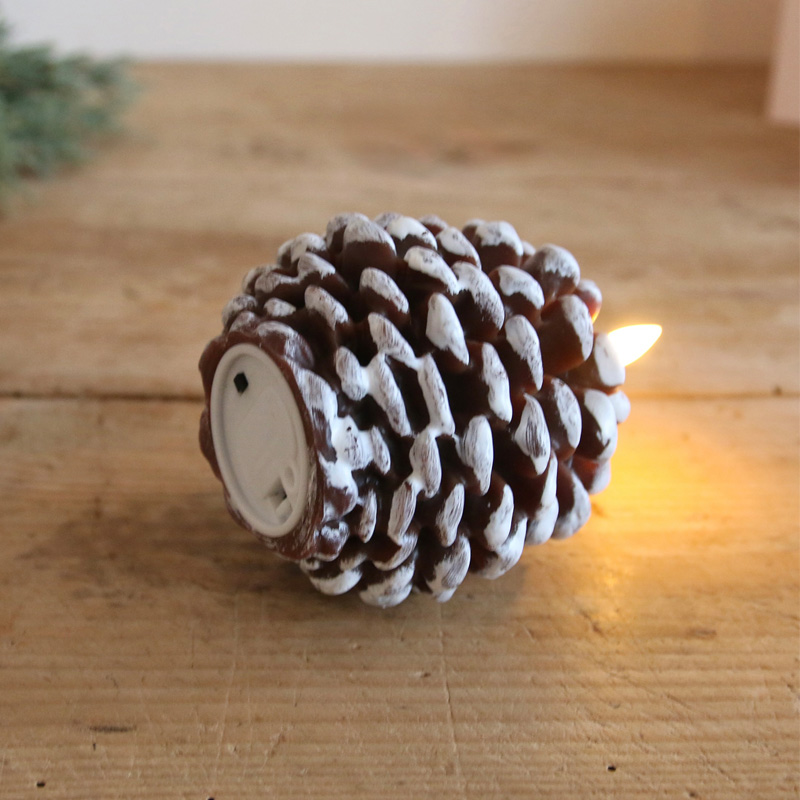 松ぼっくりをモチーフにしたLEDタイプのテーパーキャンドル♪