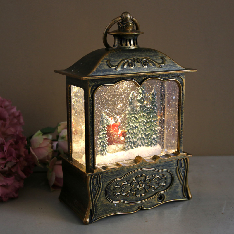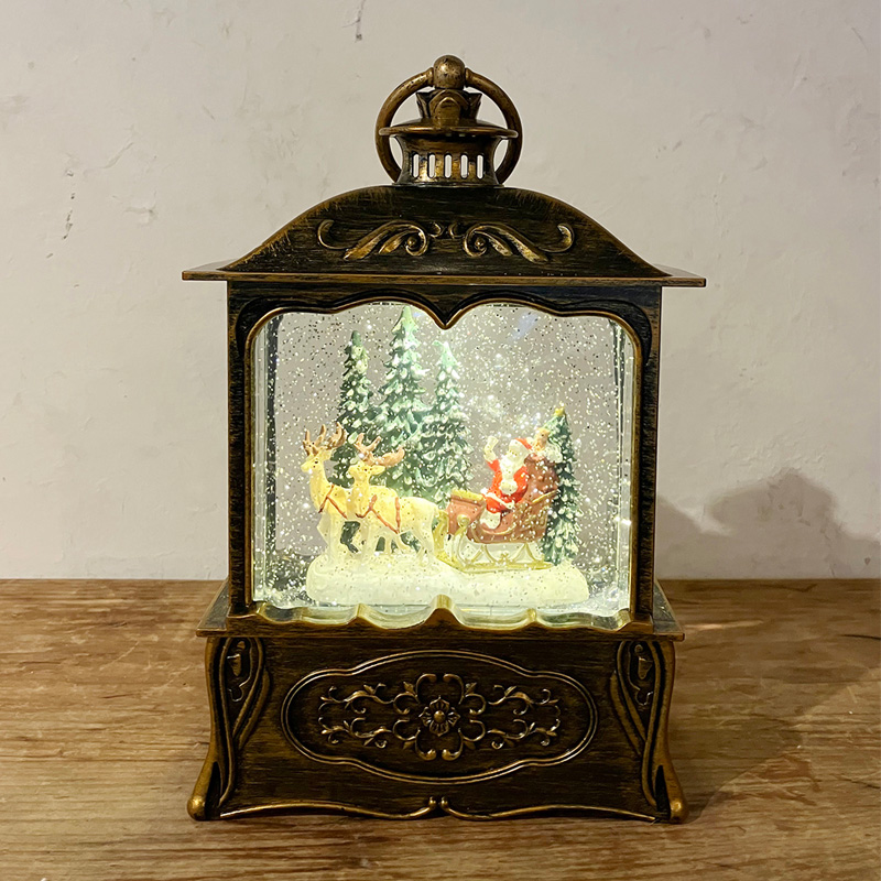 温かみのあるアンティーク調のデザインに、LEDライトときらめくグリッターが合わさり、