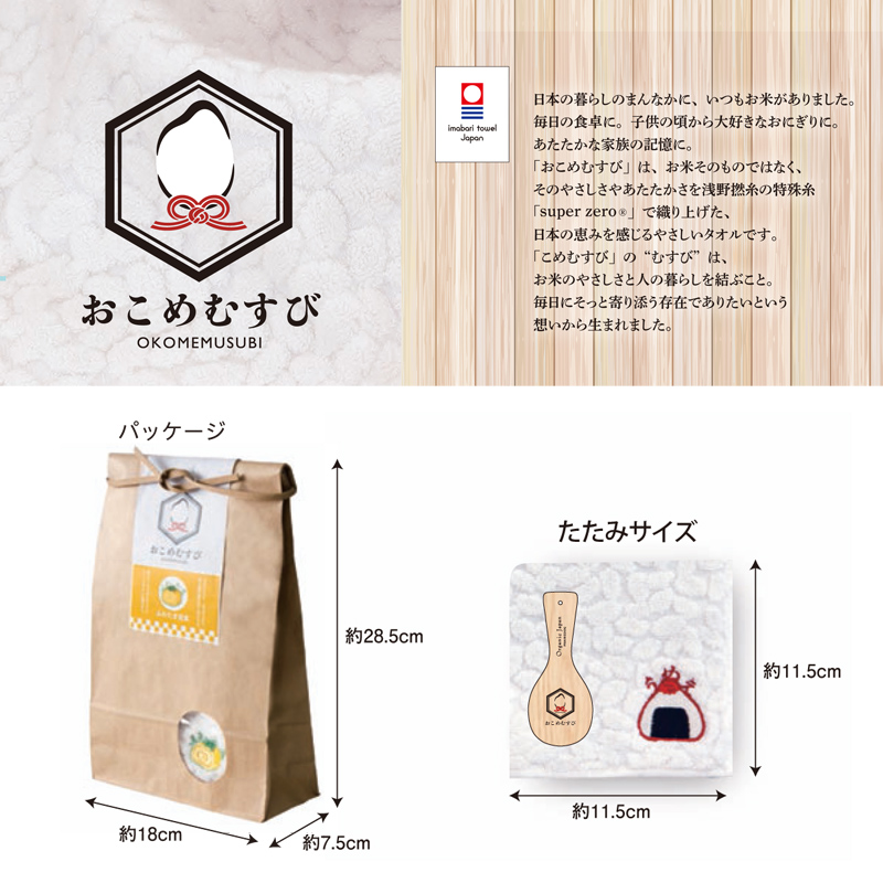 「おこめむすび」のタオルはお米そのもではなく、そのやさしさやあたたかさを