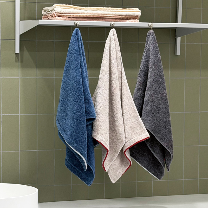 ロープのように仕立てた端のデザインが、タオルにさりげない個性と上質感を添え、
