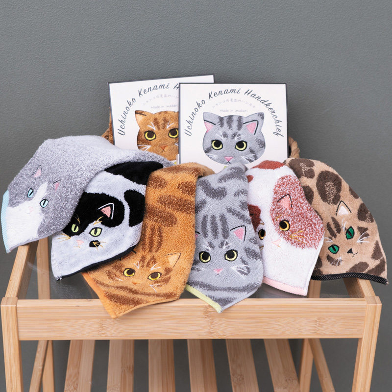 ニャンコの柄をデザインした、個性豊かなハンカチ!