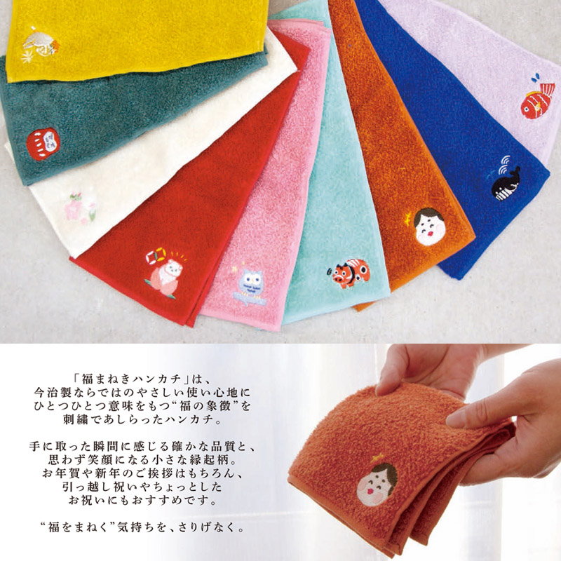「福まねきハンカチ」は、今治製ならではのやさしい使い心地に