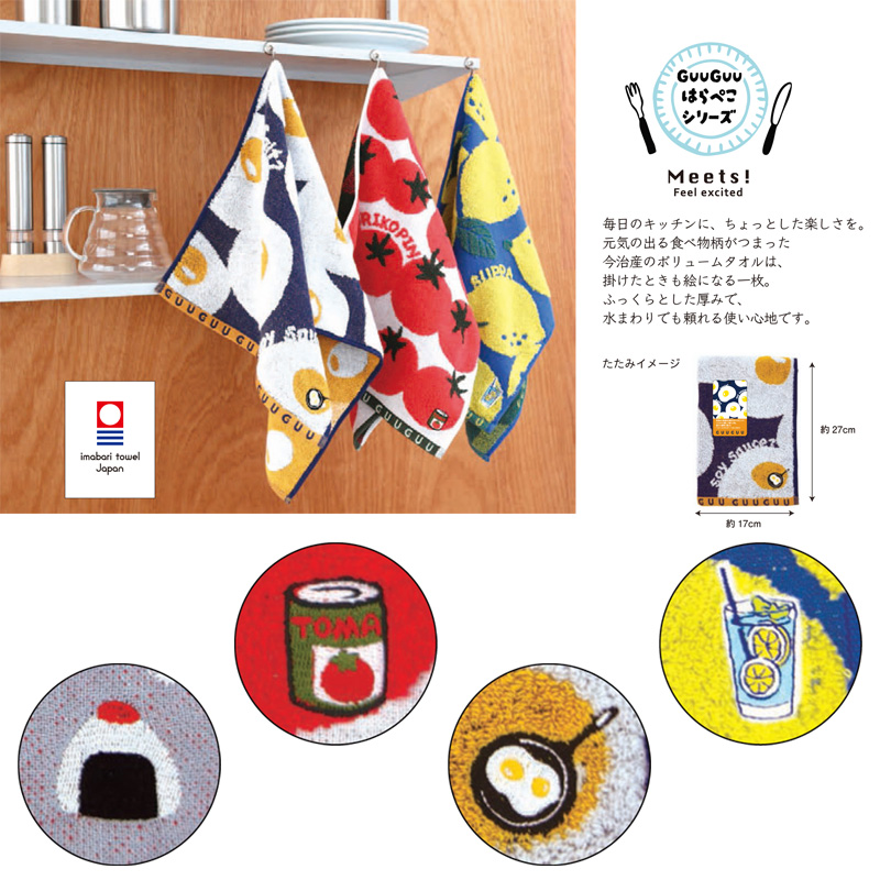 元気の出る食べ物柄がつまった今治産のボリュームタオルは、