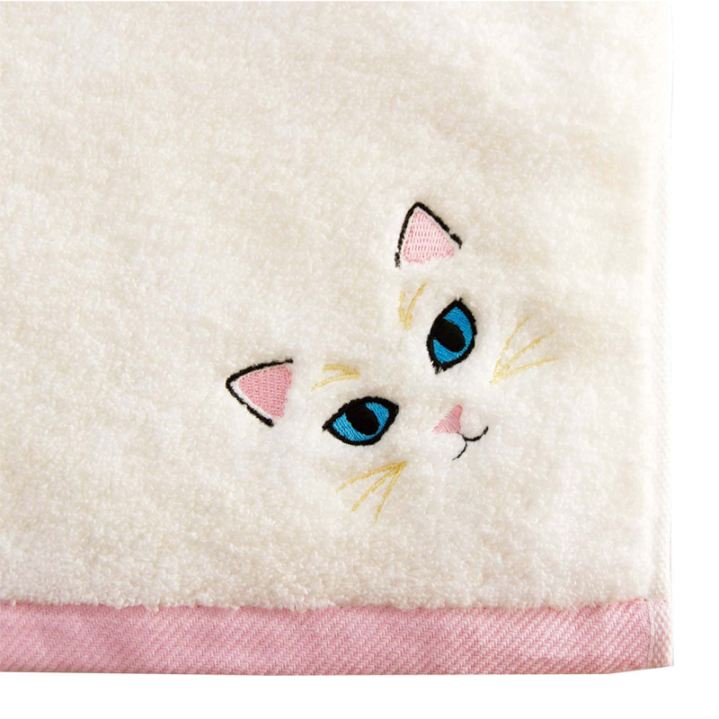 ニャンコの柄をデザインした、個性豊かなフェイスタオル。