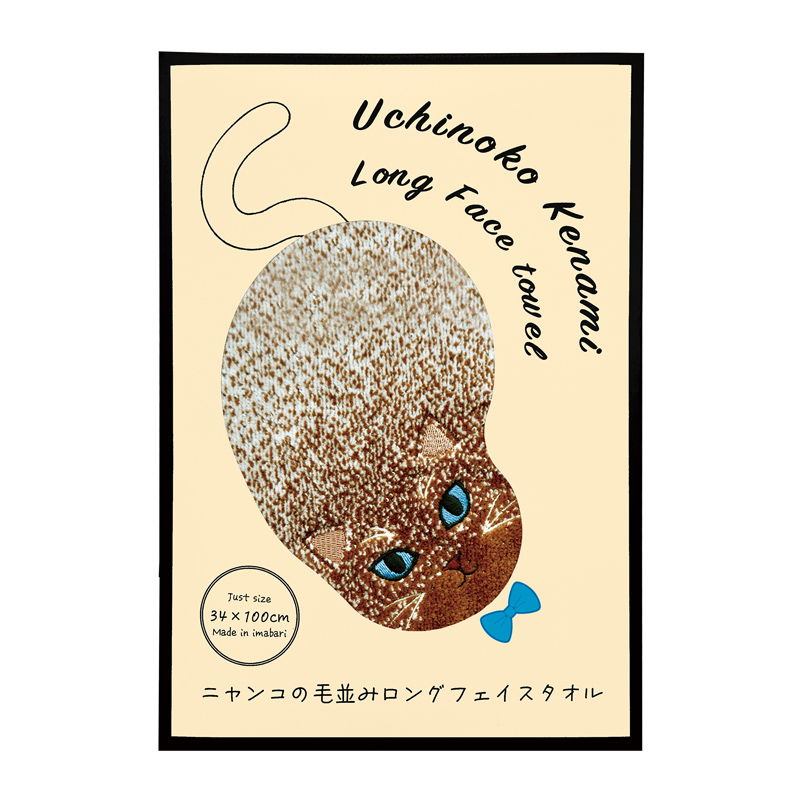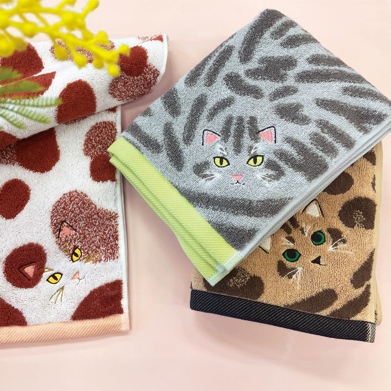 ニャンコの柄をデザインした、個性豊かなフェイスタオル。