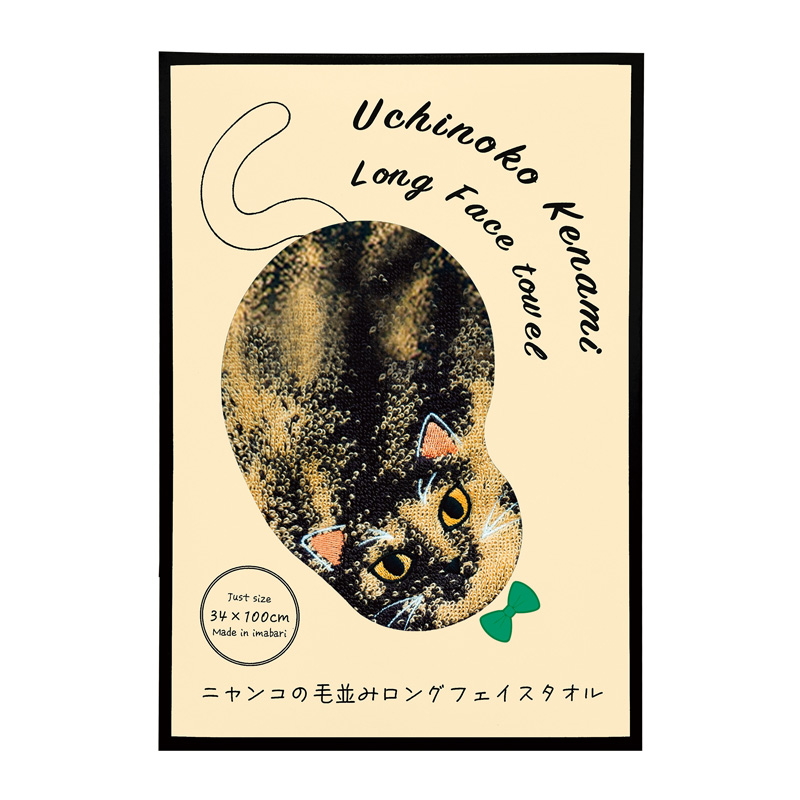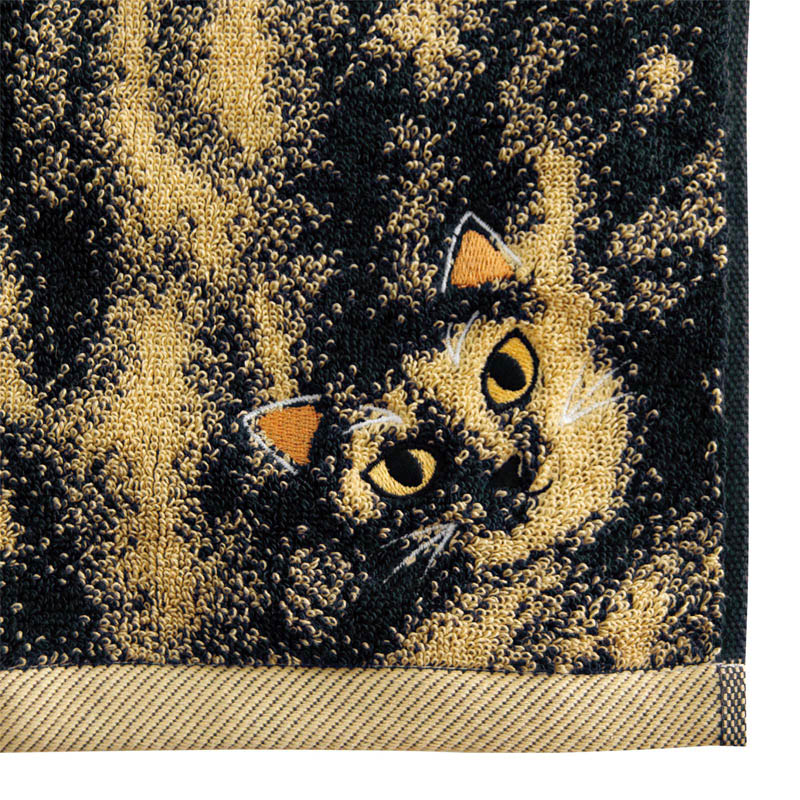 ニャンコの柄をデザインした、個性豊かなフェイスタオル。