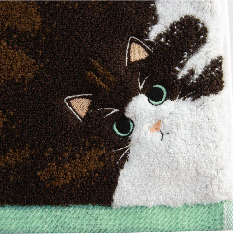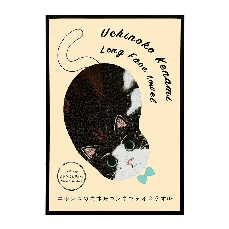 ニャンコの柄をデザインした、個性豊かなフェイスタオル。